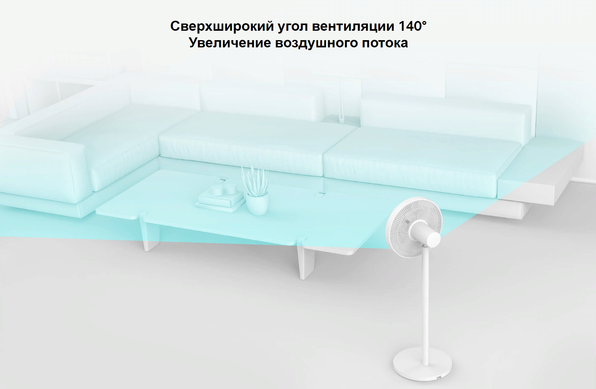 Сверхширокий угол вентиляции 140°. Увеличение воздушного потока